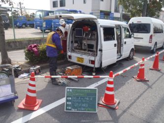 パラボラ工法は、コンパクトな専用機材を使用してわずかな時間でマンホールのふたの取替を行い、しかも高品質・高強度を提供する補修工法です。マンホール周囲の舗装を円形に切断するため、カットクロス部が生じません。すたの密着度が高く、摩擦抵抗も曲線に分散されるため、大きな負荷に耐えることができます。