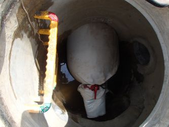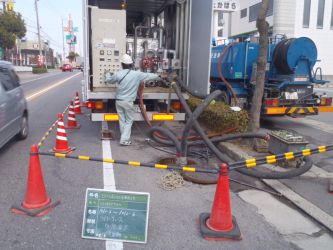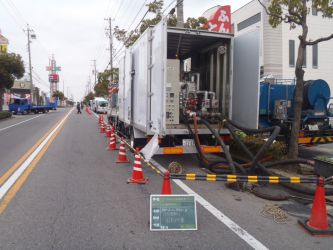 あらかじめ工場で強化した更正材を管内に引き入れた後、更正材に水圧をかけて拡径し、水の加熱・循環で樹脂を硬化形成させることによって、既設の管渠に新しい管渠を作り上げます。非開削の工法で、作業はたいへん速やかです。更正材にガラス繊維を組み込んで物性を強化させたのが、オールライナーZ工法です。